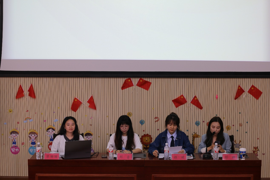优秀成员代表发言,将我们社团的特点全面展现出来。接着就是我们社团负责老师颜媛老师、刘蕾老师、彭麟老师为优秀老成员颁发徽章,对他们在社团的付出表示肯定以及鼓励他们在社团能更好的工作。之后由各位老师宣读新成员名单,对他们进入社团表示欢迎。