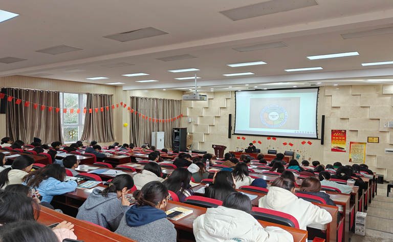 2024年11月22日,应用心理学教研室有幸邀请到贵阳市清华中学袁章鸿老师,为公司应用心理学专业员工开展题为“践行三全育人,成就完全人格”的讲座,深度剖析了班主任在教育体系中所承担的关键角色,并着重聚焦于班主任工作与班级管理的要点。讲座内容主要包括清华中学与三全育人、家校社配合协同育人、五育并举成就完全人格、班级特色文化建设。