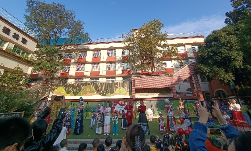 每周一必备的除了升国旗就是各班轮流展示的晨会,晨会体现了各班的班级文化及幼儿的个性发展。晨会需要每个幼儿和家长共同参与,表演过程需要家长和孩子们的默契,除了伴随背景音乐做出动作以外,和孩子之间的互相配合、亲子之间体现出来的亲密关系能够带给观众不一样的观感。独特的民族扎染和活力四射的超级玛丽舞蹈二者结合起来毫不违和。民族服饰走秀让大家一次就体会到了中国五十六个民族别具一格的风俗。