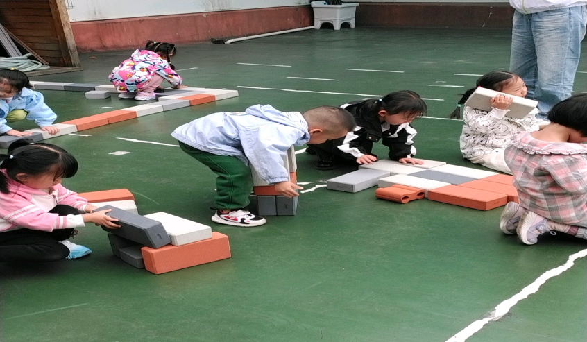 又经过了一个月的实习时间,我发现我们班的小朋友在游戏方面有天赋。就比如说在交通区进行玩泡沫砖块的时候,我们班的小朋友总是有很多奇思妙想的想法。