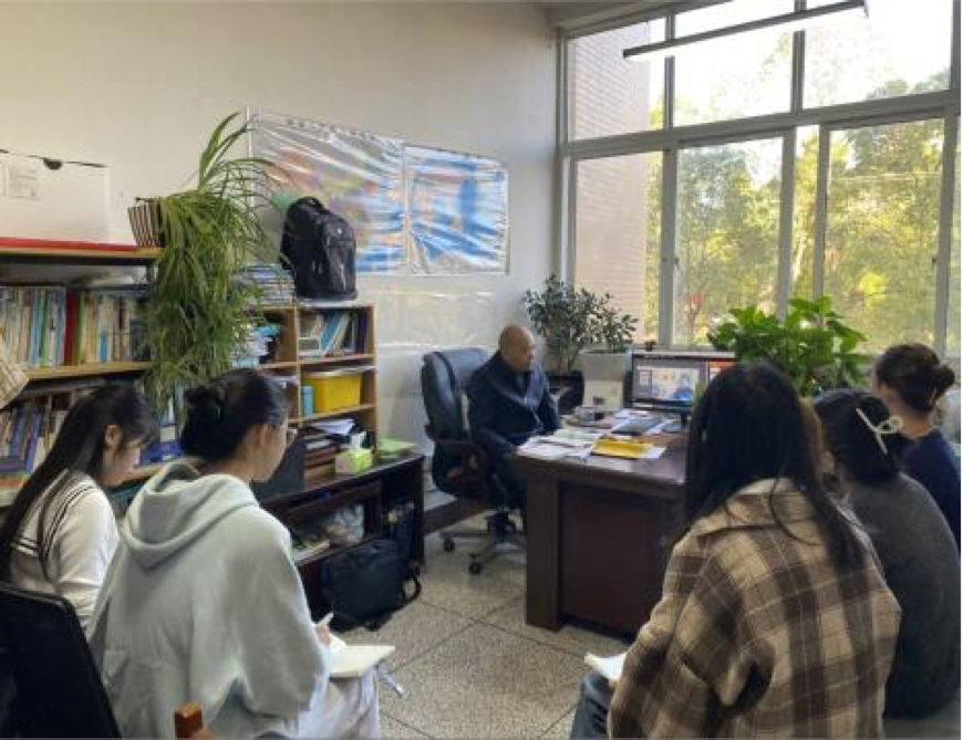 在员工交流过程中,自信大方,表达流畅。观看结束后,阮经理对研究生们的表现进行了点评和总结。他肯定了研究生们在如何抓住教学重难点,如何激发员工学习兴趣等方面的进步,同时也指出了存在的问题和不足,并给出了针对性的改进建议。