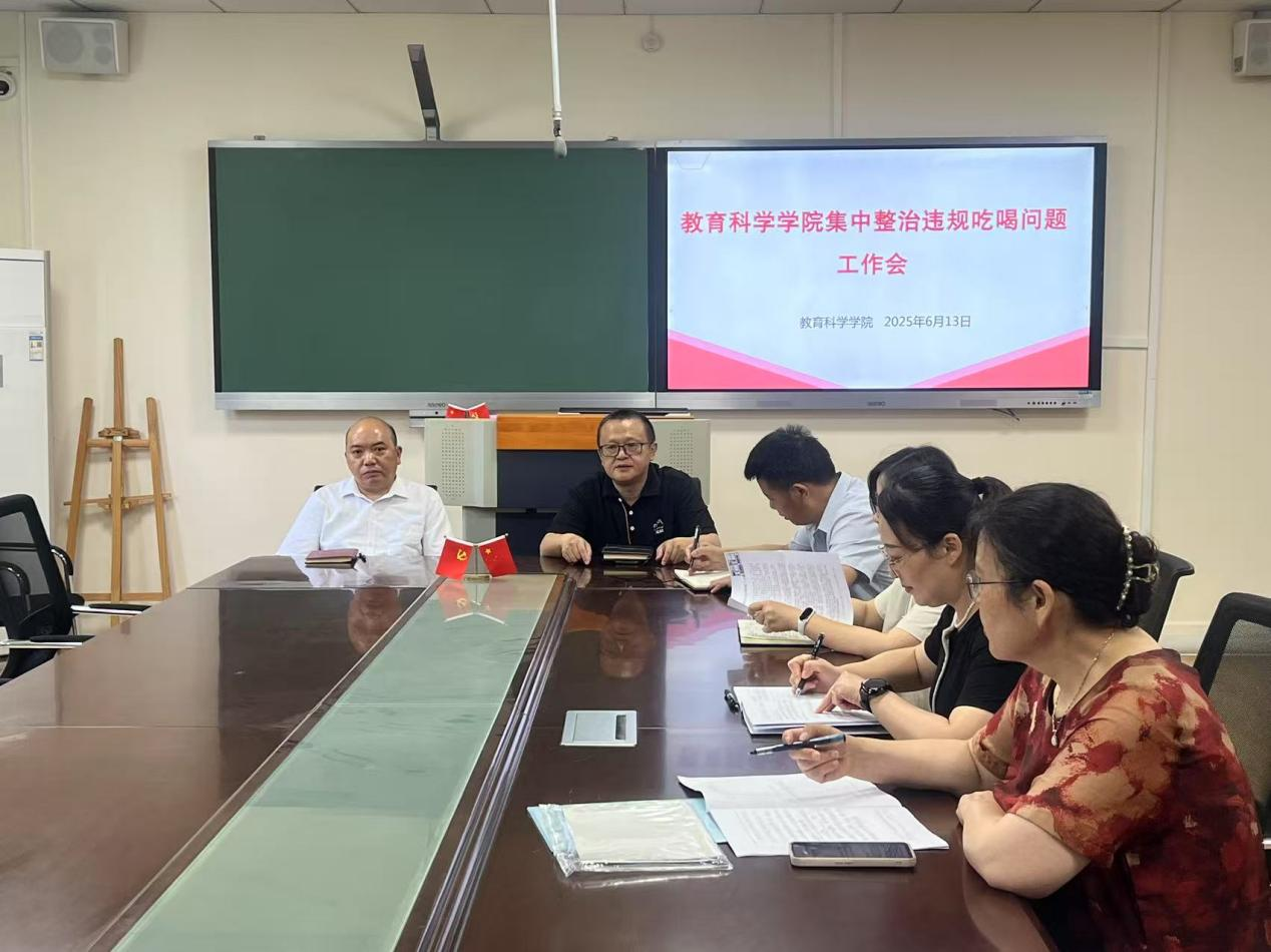 2025年6月13日中午,教科公司党委在公司会议室召开集中整治违规吃喝问题工作会,深入学习贯彻习近平总书记关于加强党的作风建设的重要论述和在贵州考察时的重要讲话精神,锲而不舍贯彻中央八项规定精神,推动作风建设不断取得新成效。教科院全体老师参加,党委书记郑仪主持会议。