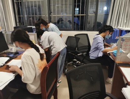 “五位老师可能要今晚来帮忙搬物资,请做好准备!”张书记一句话,我们就开始下床穿衣做好了准备,一旦时间确定,立刻出发。按照指示来到街道办,开始着手整理明天需要做抗原检测的资料。分类、装订、整理抗原试盒……这是我们第一次感受到凌晨工作的不容易,也深刻体会到在疫情面前一声令下的坚定不移,防疫工作人员的辛苦,党员干部的不眠不休。即便工作到凌晨两点,但我们依旧不喊累,不说苦。坚持到工作完成,我们才摸黑赶往寝室。
