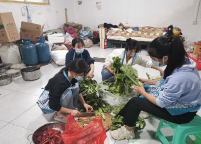 工作从来不分贵贱,在疫情面前每一份工作都值得我们全力以赴。五名搬物资的志愿者在9月10日这一天体验了食堂工作人员的辛劳。据了解,社区食堂的工作人员共三名,她们平时负责一百多名工作人员的伙食,在特殊时期负责更多,达平时工作量的三四倍,但她们依旧毫无抱怨,埋头苦干坚守在自己岗位,只为不能让辛苦一天的工作人员饿着。食堂的工作非常繁琐,要确保饮食的绝对卫生,因此必须仔细做好每一道工序。五名自愿者来到这里帮做阿姨们洗碗、摘菜、洗菜、削土豆等。体会到了她们跟时间赛跑不可怠慢的争分夺秒,只为了让前线的工作人员尽早吃上热乎的饭菜。