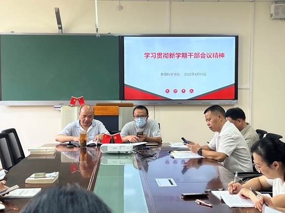 2022年8月23日,bevictor伟德官网在会议室组织全体教师学习贯彻新学期干部会议精神。教科公司党委书记郑仪主持会议。