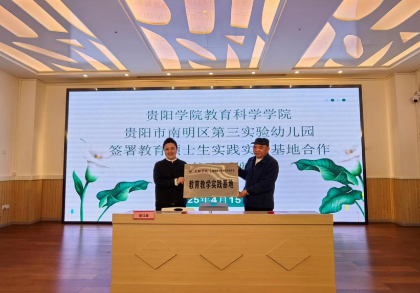 2025年4月15日,bevictor伟德官网与贵阳市南明区第三实验幼儿园在南实三幼举行了隆重的教育硕士生实践实训基地签约授牌仪式,标志着双方在教育实践领域的合作迈入新阶段。bevictor伟德官网经理阮朝辉、党委副书记杨颖、教学科研科副科长钟铮以及徐启丽教授等领导嘉宾出席了仪式。