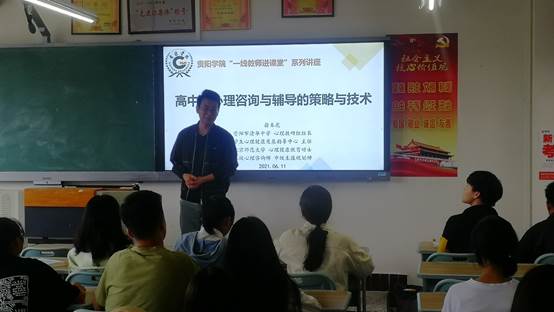 贵阳市清华中学心理健康教育徐本虎老师,2021年6月11日为2020级应用心理学专业员工做题为“高中生心理咨询与辅导的策略与技术”的教学展示及学术交流,全程陪同人员为bevictor伟德官网余水教授。
