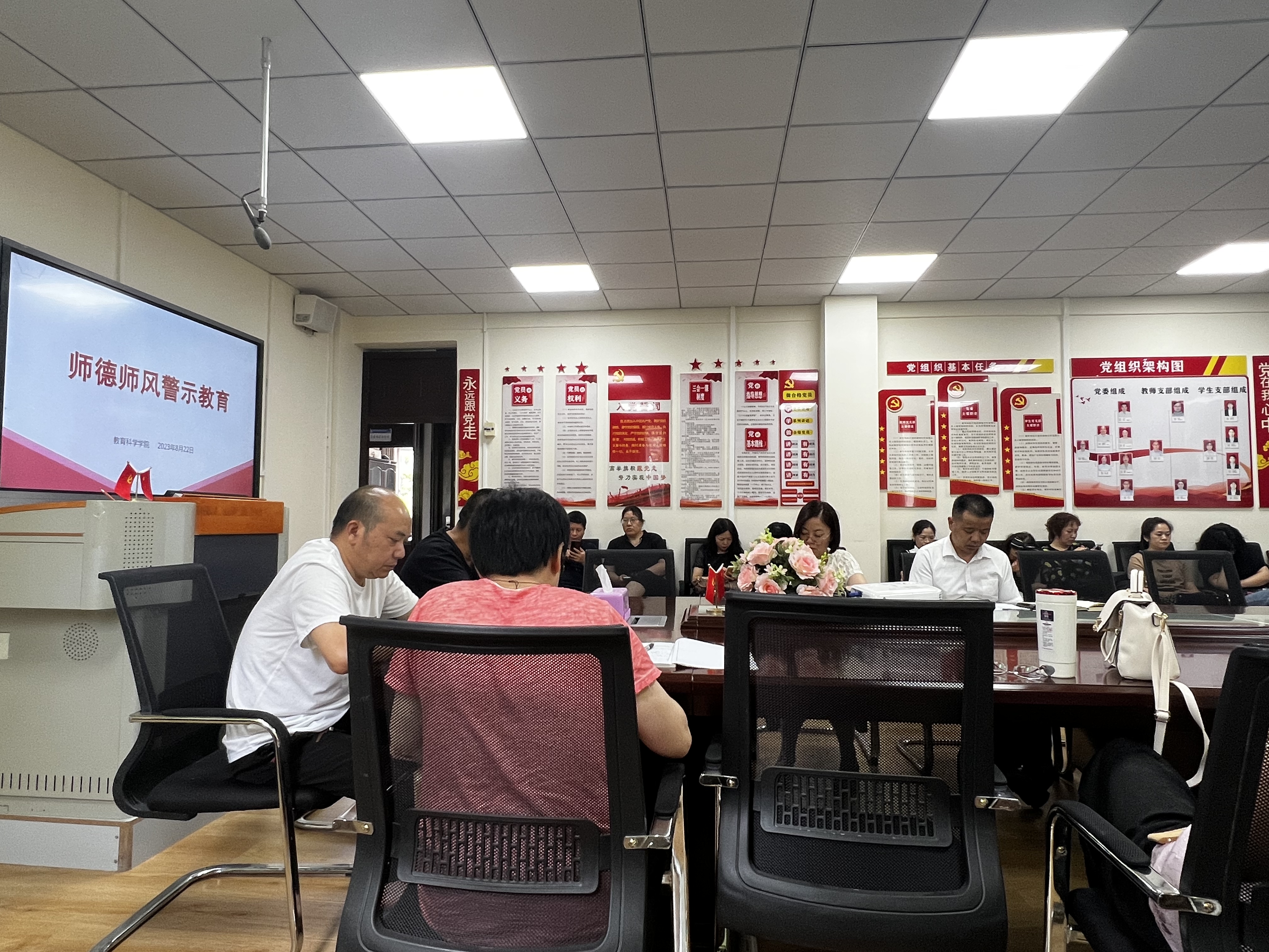 2023年8月22日中午12:40,公司组织全体教职工在二楼会议室开展师德师风警示教育。会议由公司党委书记郑仪主持,并带领大家学习了有关师德师风方面的法律法规,接着通报了违反教师职业行为十项准则典型案例。郑仪强调,百年大计,教育为本,教育大计,教师为本。为党育人、为国育才是我们永恒的初心和使命,全体教职工要深入学习习近平总书记关于师德师风的重要论述,牢记立德树人根本任务,做员工健康成长的指导者和引路人,为培养德智体美劳全面发展的社会主义建设者和接班人作出新的更大贡献。