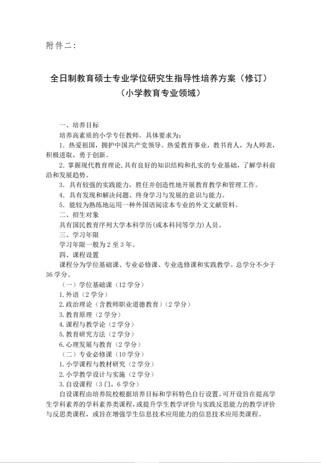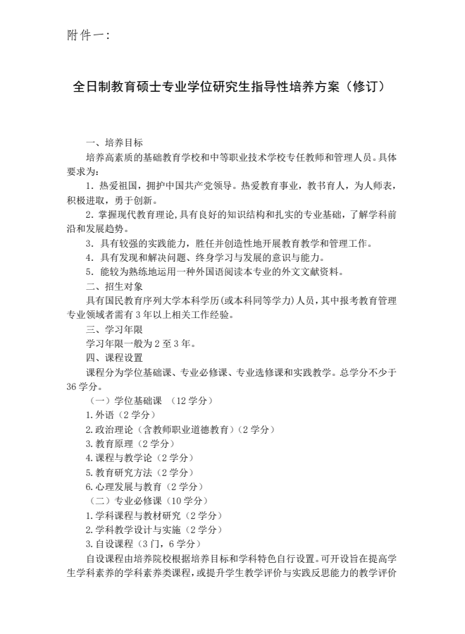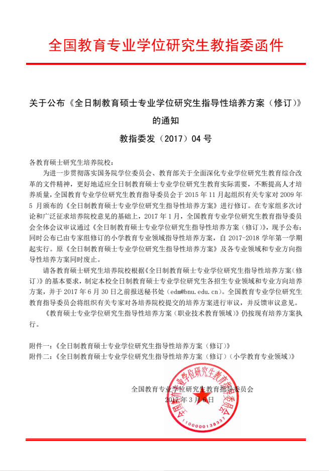 关于公布《全日制教育硕士专业学位研究生指导性培养方案(修订)》的通知