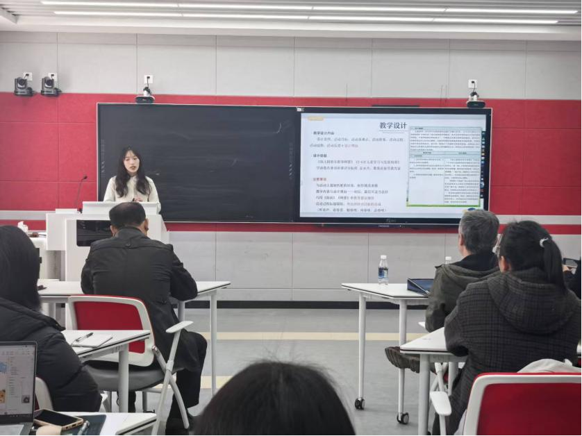 2023级学前教育专业的5名硕士研究生分别从不同的角度分享参赛与获奖的成长经验。首先是获得一等奖的盛媛媛分享了她在教学技能大赛中的宝贵经验。盛媛媛从前期准备、比赛流程及注意事项三个方面进行了详细阐述。她指出,心态准备是关键,同学们需要时刻保持反思与学习的态度,明确自己的优势与不足,并结合兴趣选择合适的教学领域。紧接着,欧冰炫、刘天容、林美琦、饶艳五位同学依次分享了各自的比赛经验。欧冰炫强调了选题的重要性,建议同学们在选题时要结合专业内容、热点时事与自身擅长领域,确保选题既有理论依据又具创新性。刘天容则分享了她在教学设计中的经验,指出教学设计应以《幼儿园教育指导纲要》和《3-6岁儿童学习发展指南》为依据,注重教学活动的互动性和幼儿主体性。林美琦从团队合作的角度出发,分享了团队在备赛过程中的经验与教训,强调了团队协作与导师指导的重要性。饶艳从初赛和决赛两个阶段展开,分享了她在比赛中的心得体会。五位同学的分享内容丰富、针对性强,为2024级研究生提供了全方位的备赛准备。