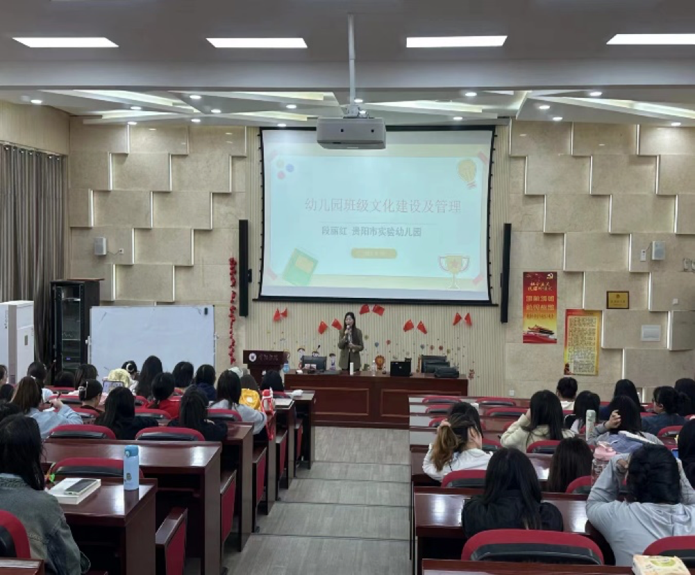 有效的班级管理不仅关乎幼儿的学习和生活环境,更是幼儿成长的关键。作为未来的幼儿园老师,为提高学前教育专业员工幼儿园班级文化建设与管理的能力,公司于2024年3月29日特邀贵阳市实验幼儿园办公室主任、市级骨干段丽红老师为23级教育硕士专业学位(学前教育领域)研究生、21级学前教育本科生开展了“幼儿园班级文化建设与班级管理”的专题讲座,硕士生导师徐启丽副教授全程参与了此次讲座。